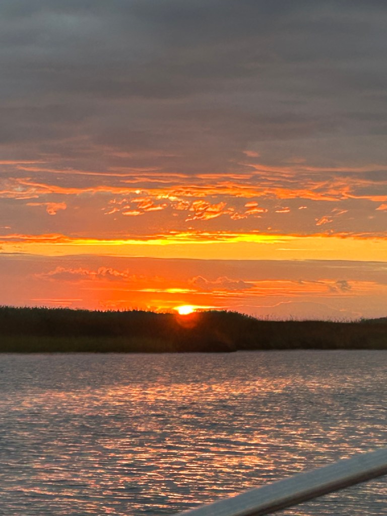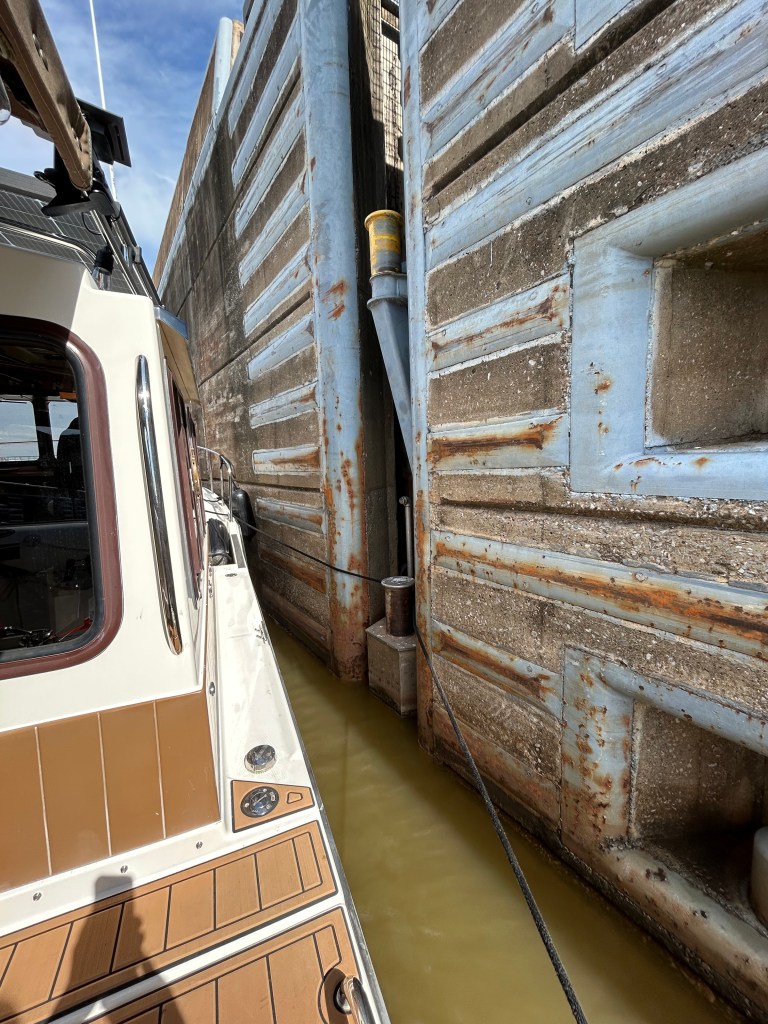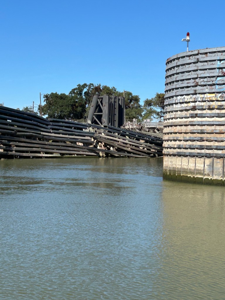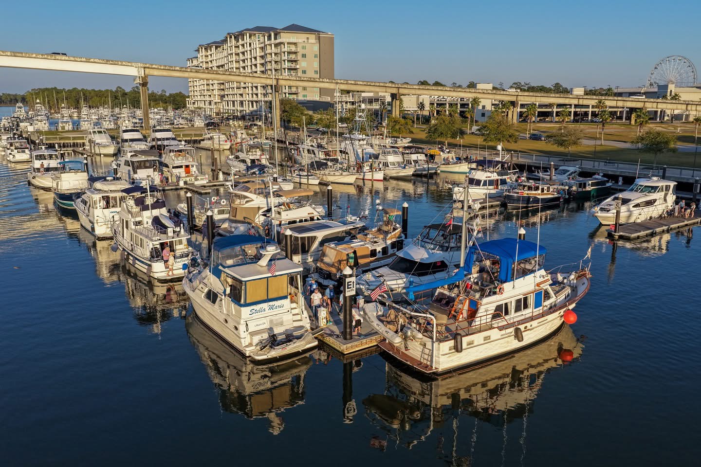 Okay, I have been lazy and remiss in posting updates. It has been a couple of weeks with slow progress and being held up by bad weather. We travelled from Navarre Beach to Rocky Bayou near Niceville, Florida. Peaceful and calm. When we left Rocky Bayou, we got our first taste of spicy seas and we moved down to Smack Bayou, another beautiful anchorage. The winds were forecast to be 15 to 20 mph so we moved to a marina in Panama City. We were on a fixed dock with pilings and no breakwater. What we didn’t know is that we would be rocking in our slip for three days. It was interesting to have to jump from a moving boat onto a narrow finger that was three feet higher than the boat! We spent Thanksgiving there with the staff and other loopers!