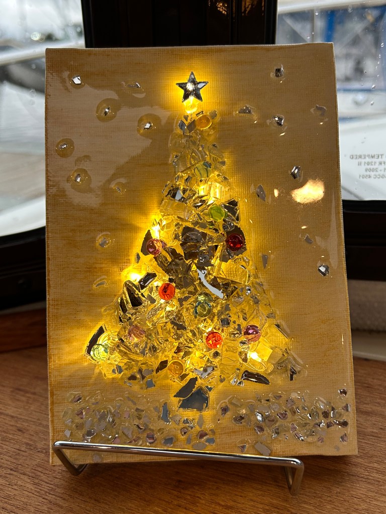 It was a big bonus to be there, lots of walks, friendly people and FISH! My dad went fishing everyday and caught his limit of speckle bellied trout! That meant there would be fish in my bowl. We ended up spending a whole week there. We decided we would wait for better seas as we are not in a hurry and we had about 150 more miles to travel. My mom was able to make a pretty Christmas tree with a looper lady that has all kinds of pretty crafts on her boat! They had a couple of potluck dinners with everyone and really enjoyed their time with them.