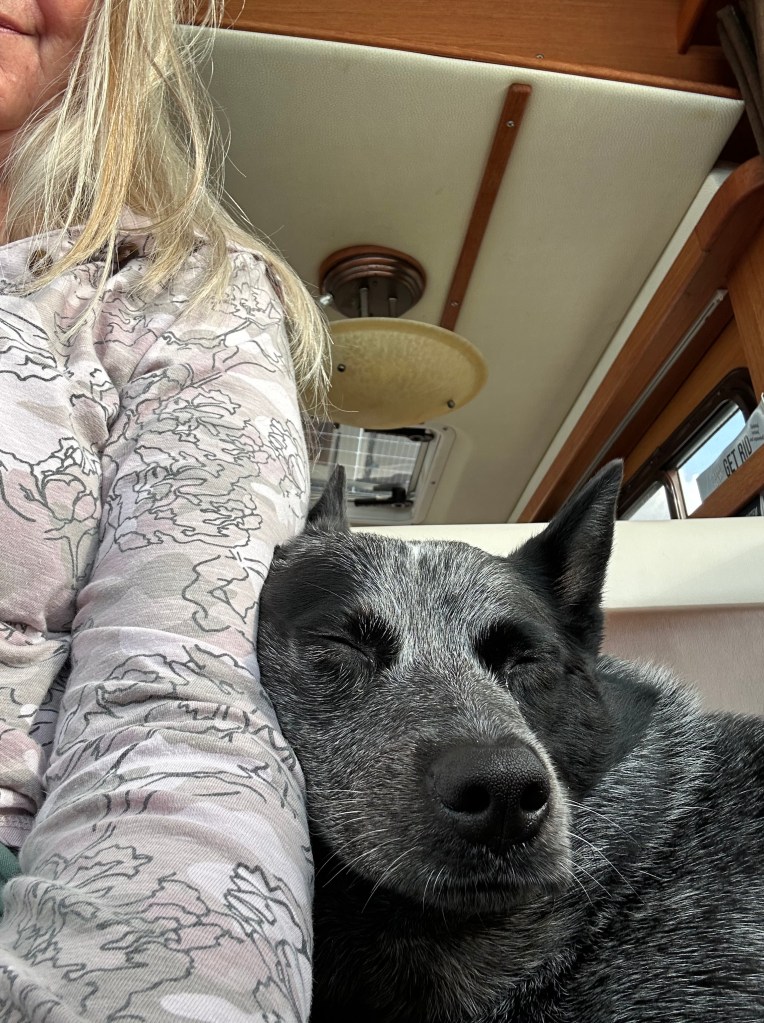 we left there November 29th for a peaceful night at Saul Creek. We then headed over to Carabelle where we met lots of other loopers, all waiting to make the overnight crossing to Tarpon Springs or the three day trip around the Big Bend. Weather was not good with no good weather window to do the long crossing. We, and three other boats, opted to go from Carabelle to Steinhatchee. It was truly my roughest day on the boat. There were big waves and lots of wind. Part of the trip, which was about 9 hours, had the seas rocking and rolling our boat. Stuff flew off the counters and shelves, I just stayed in my bed under the table. You couldn’t walk anywhere in there! It was a big relief to stop at Steinhatchee.