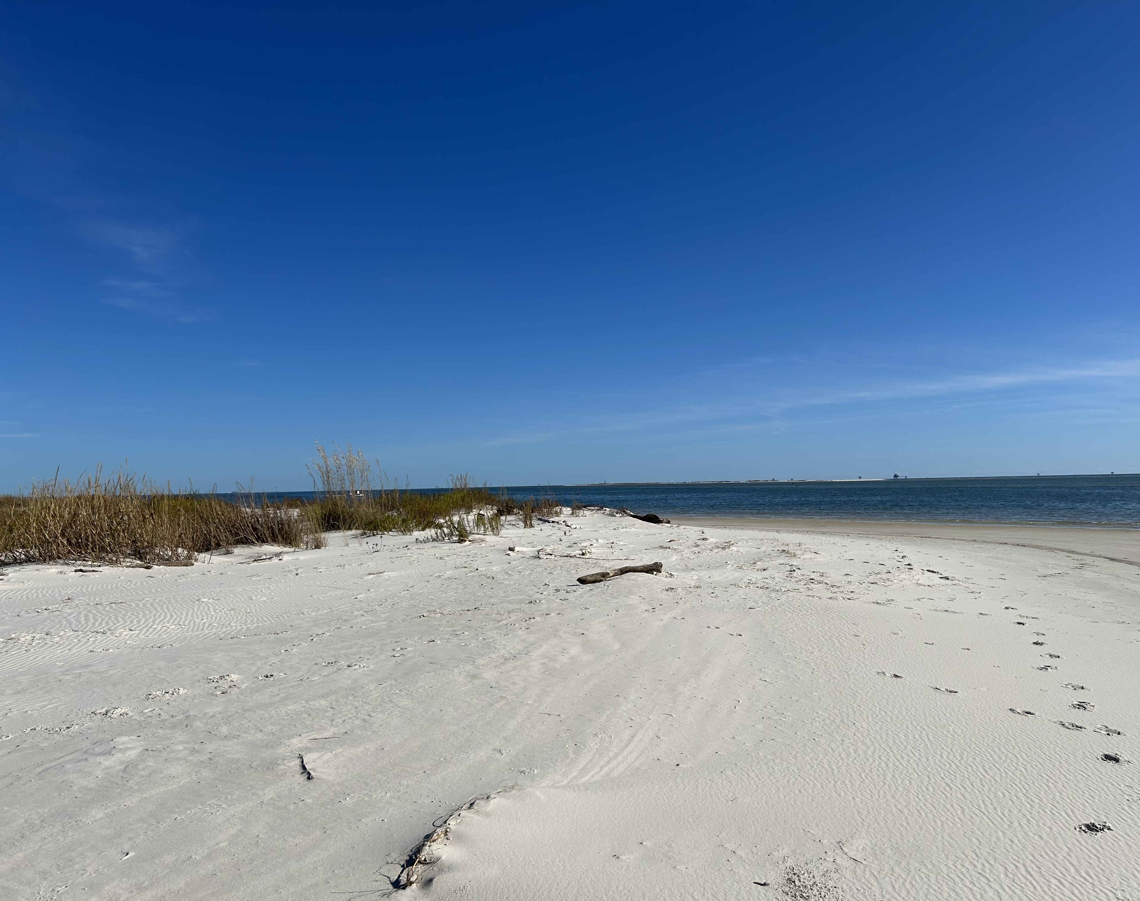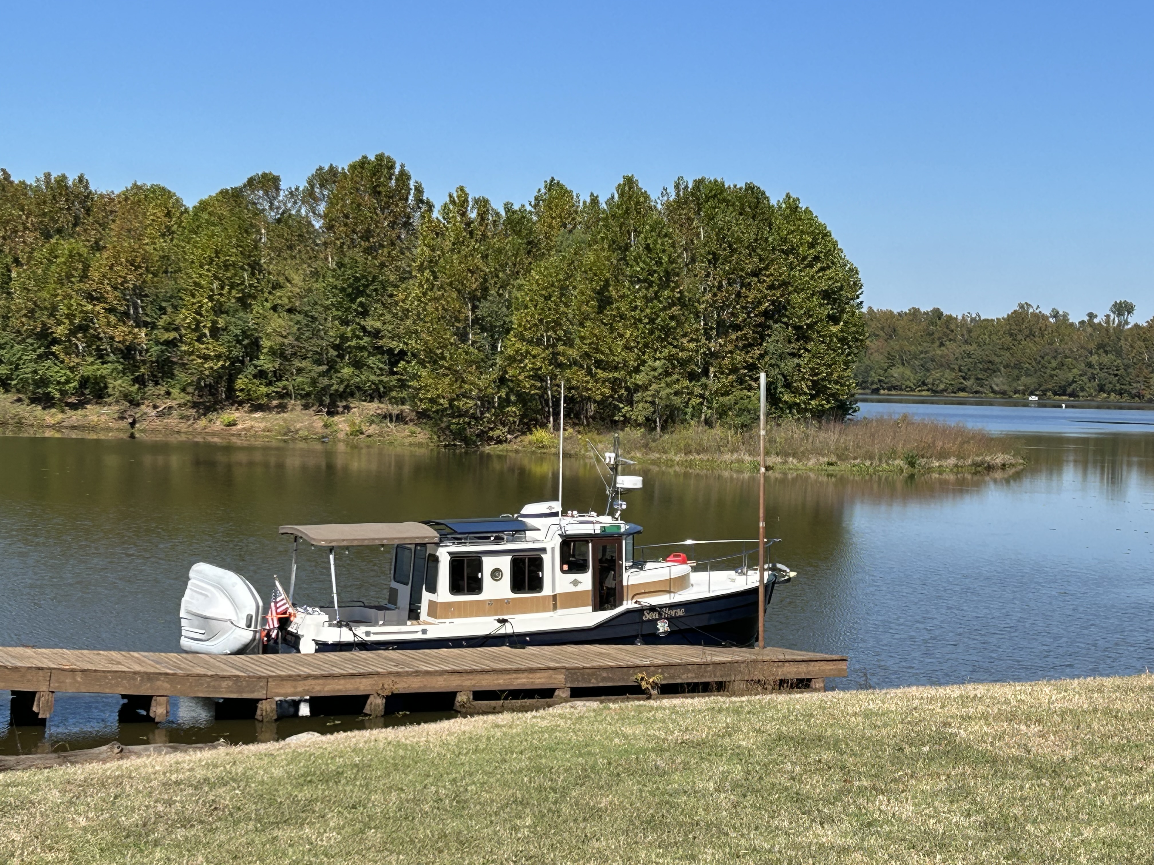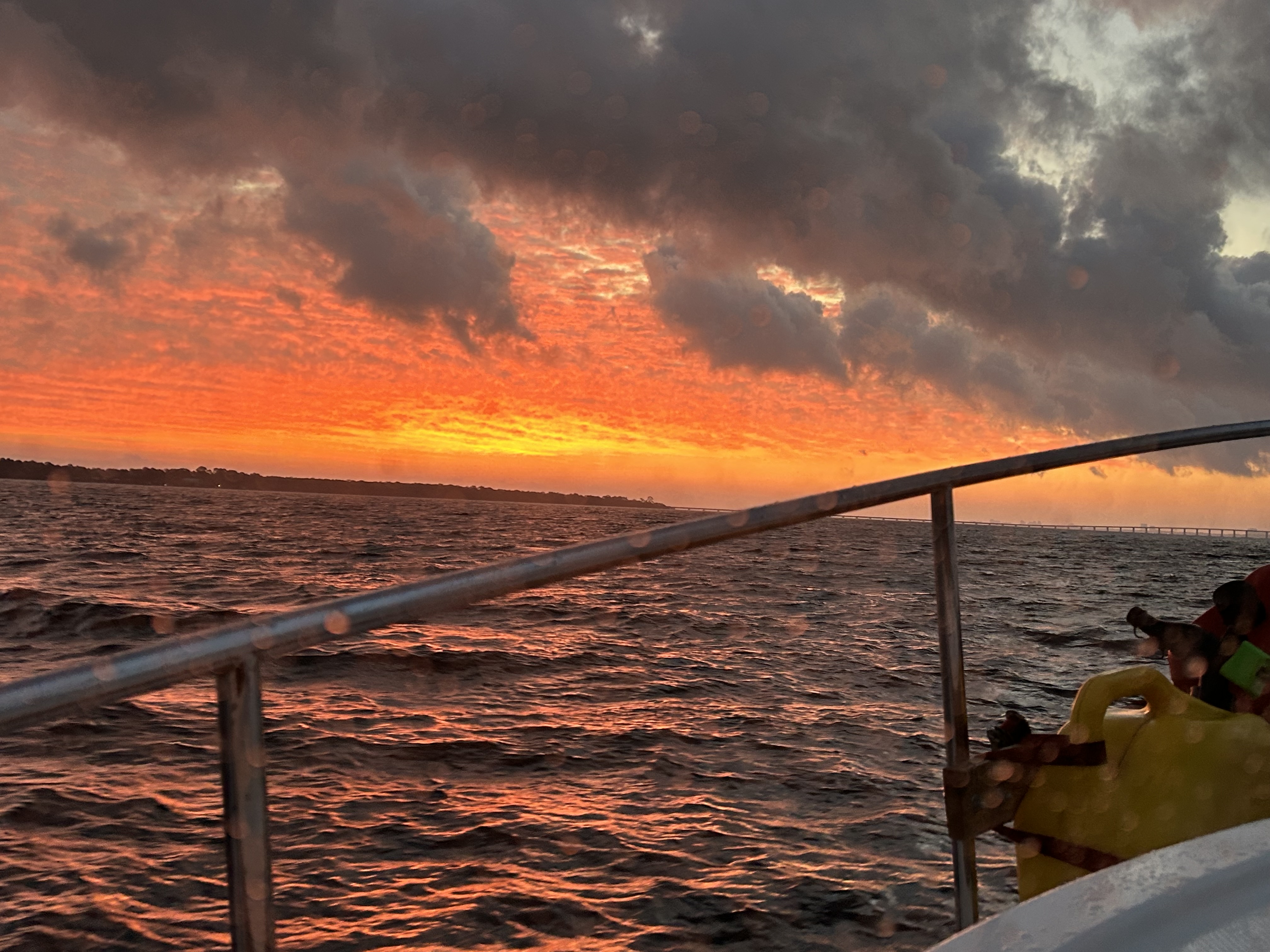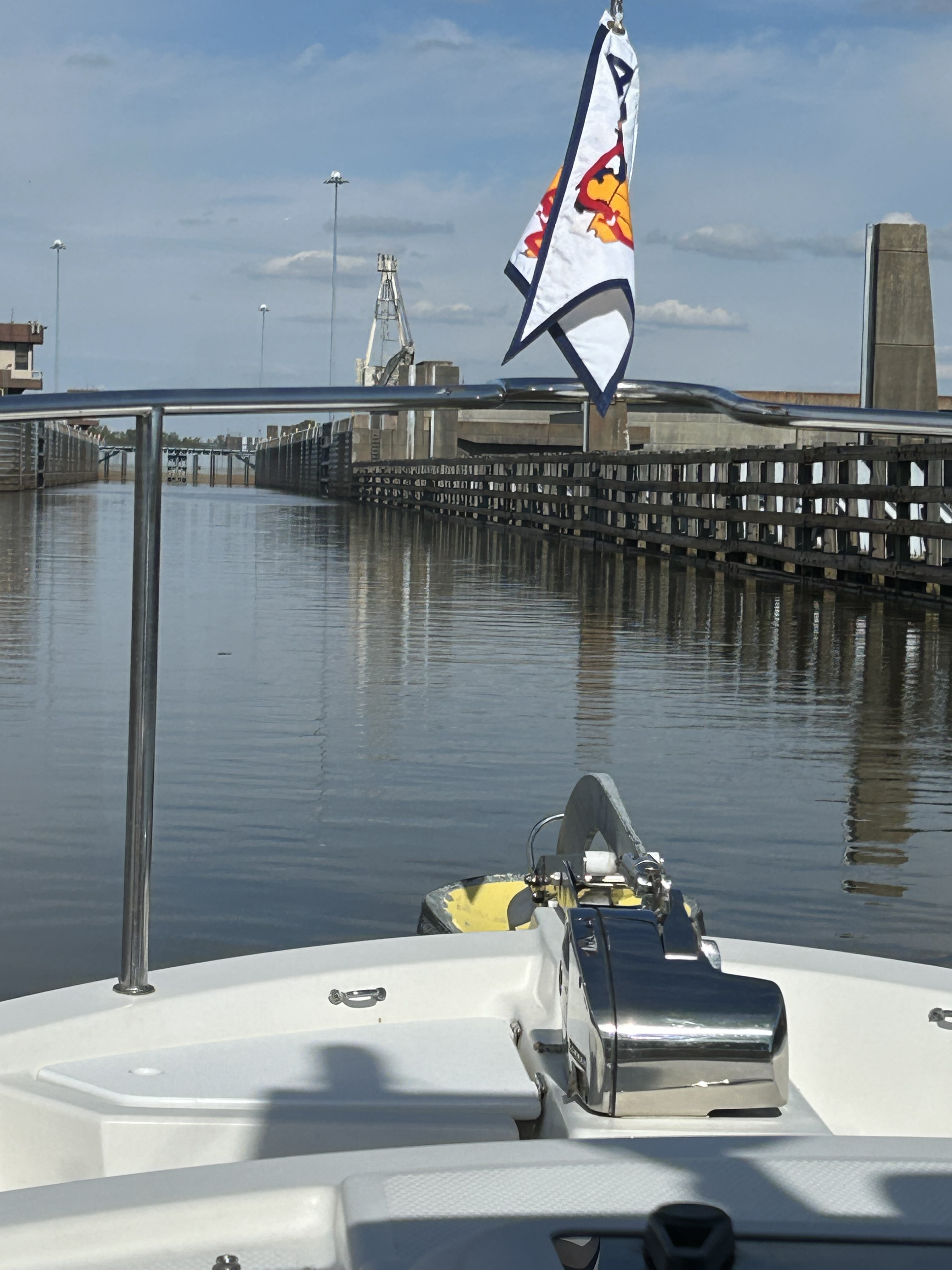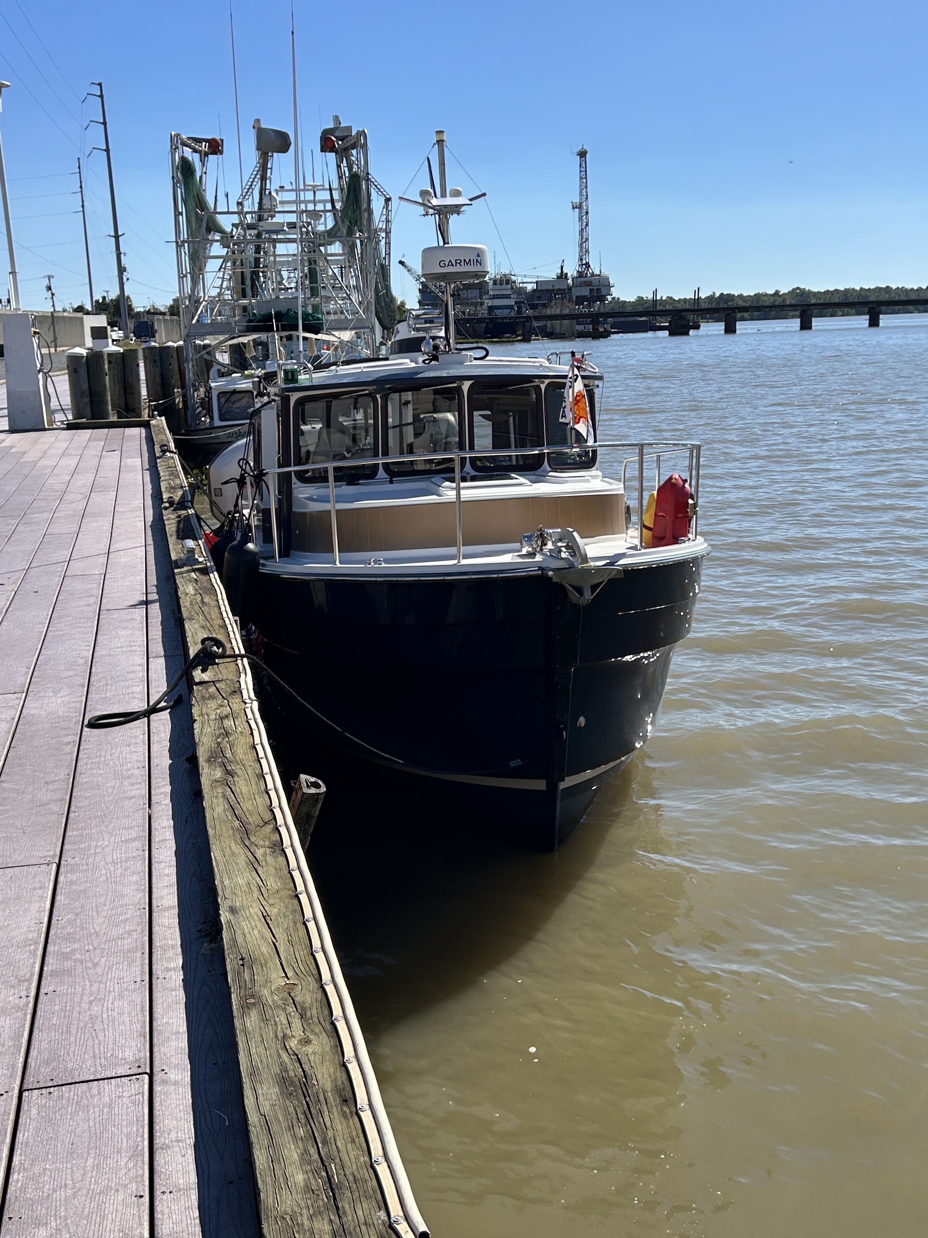Okay, I have been lazy and remiss in posting updates. It has been a couple of weeks with slow progress and being held up by bad weather. We travelled from Navarre Beach to Rocky Bayou near Niceville, Florida. Peaceful and calm. When we left Rocky Bayou, we got our first taste of spicy seas and we moved down to Smack Bayou, another beautiful anchorage. The winds were forecast to be 15 to 20 mph so we moved to a marina in Panama City. We were on a fixed dock with pilings and no breakwater. What we didn’t know is that we would be rocking in our slip for three days. It was interesting to have to jump from a moving boat onto a narrow finger that was three feet higher than the boat! We spent Thanksgiving there with the staff and other loopers!