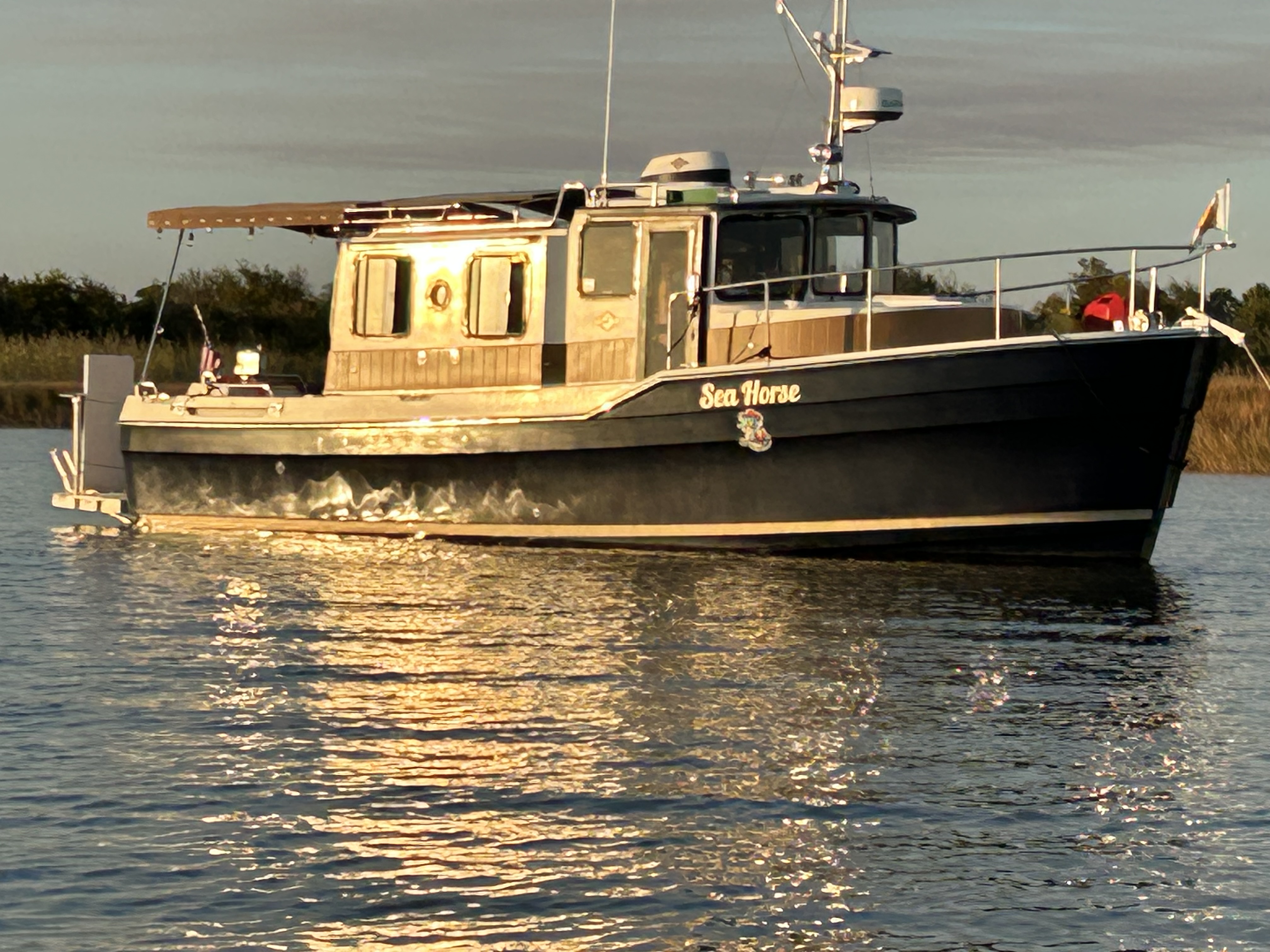 we left there November 29th for a peaceful night at Saul Creek. We then headed over to Carabelle where we met lots of other loopers, all waiting to make the overnight crossing to Tarpon Springs or the three day trip around the Big Bend. Weather was not good with no good weather window to do the long crossing. We, and three other boats, opted to go from Carabelle to Steinhatchee. It was truly my roughest day on the boat. There were big waves and lots of wind. Part of the trip, which was about 9 hours, had the seas rocking and rolling our boat. Stuff flew off the counters and shelves, I just stayed in my bed under the table. You couldn’t walk anywhere in there! It was a big relief to stop at Steinhatchee.